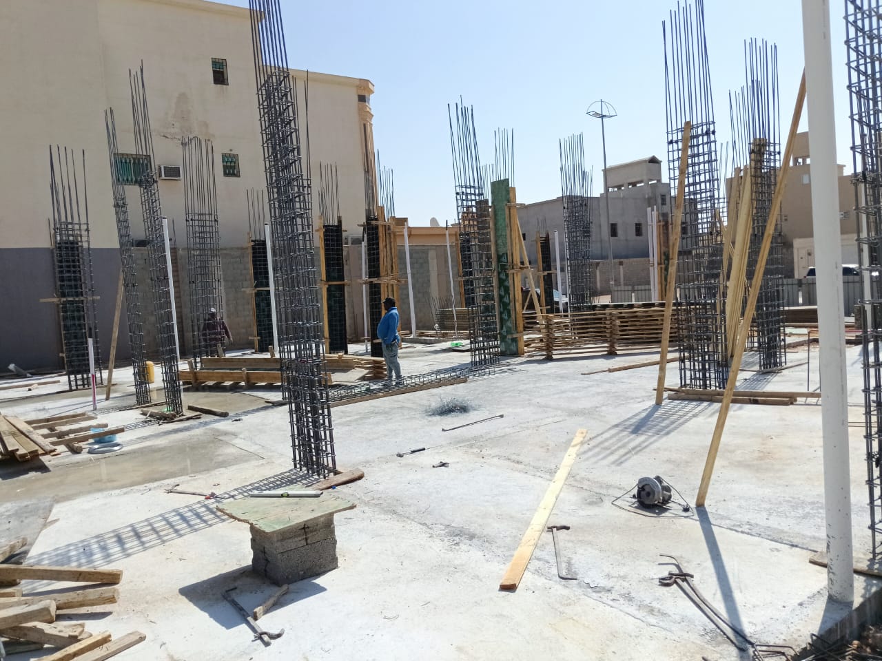 نقدم خدمات النجارة المسلحة للقواعد والأعمدة والأسقف بأعلى مستويات الدقة والاحترافية لضمان سلامة الهيكل الإنشائي.